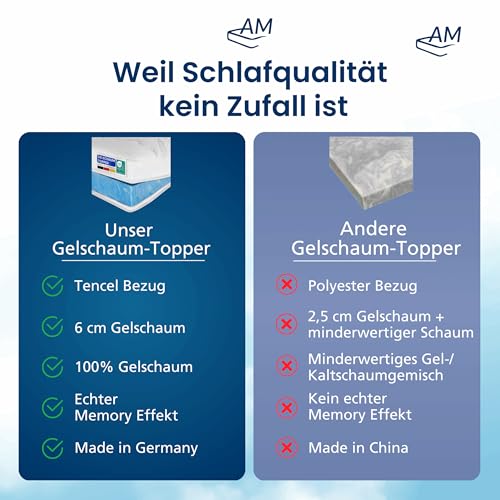 Premium Gelschaum-Topper 80 x 210 cm mit RG 50 - Hochwertiger Lyocell-Bezug - Antirutschfunktion - Umlaufendes Klimaband - Qualität Made in Germany - Gel-Topper 80x 210