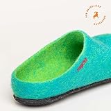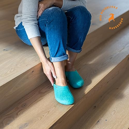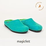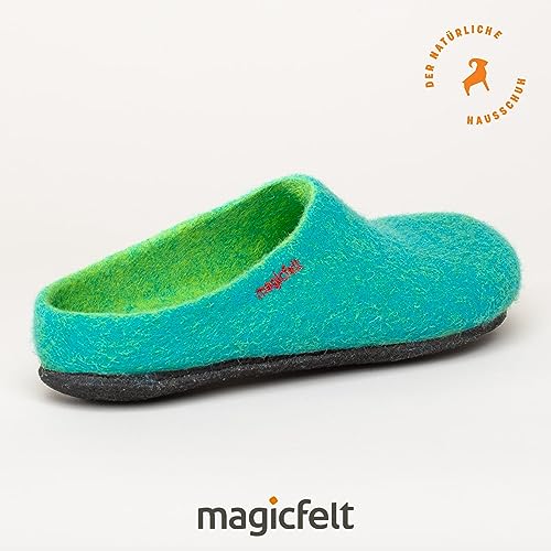 Magicfelt Filzpantoffeln 709 aus Mulesing-freier Merino-Schurwolle – Handgefertigte & anatomisch geformte Hausschuhe für Damen & Herren Größe EU 36-50 – Filzclogs mit Filz-Latex-Sohle Smaragd, 39