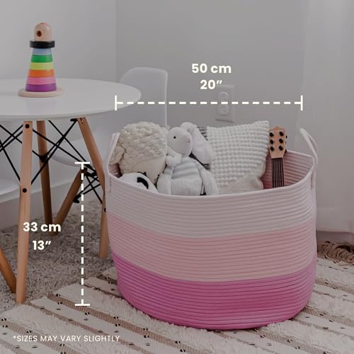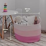 OrganiHaus Korb Geflochten Rund, Wäschekorb Geflochten, Korb Aufbewahrung Groß, Aufbewahrungskorb Kinderzimmer, Aufbewahrungskorb für Decken Kissen Spielzeug, Faltbar mit Griff - 50x33cm, Rosa