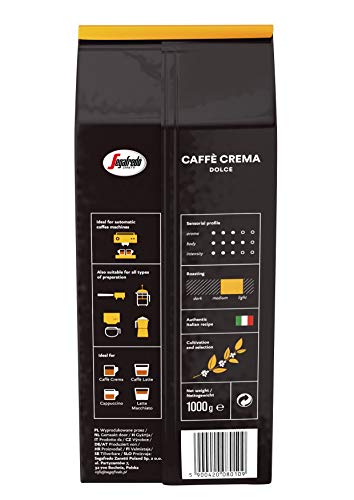 Segafredo Zanetti Caffè Crema Dolce - Ganze Bohen (1kg Packung) - Geeignet für Caffè Crema - Kaffeebohnen mit heller bis mittlerer Röstung, mild und ausgewogen im Geschmack