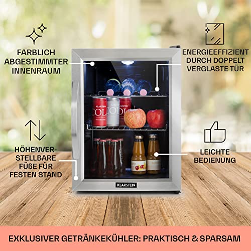 Klarstein Mini Kühlschrank mit Glastür, für Zimmer, Getränkekühlschrank Klein mit Verstellbaren Ablagen, 33 Liter, Indoor/Outdoor Kühlschrank Leise