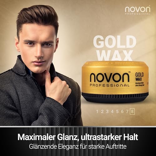 6 x Novon Professional Gold Wax | Haarwax | 150 ml Haarpomade | intensiver Glanz im Glas-Look | frischer Duft im One-Million-Stil|hoher Halt | familienfreundlich & rückstandsfrei | festliche Stylings
