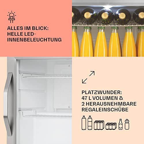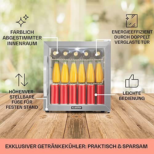 Klarstein Mini Kühlschrank mit Glastür, Mini-Kühlschrank für Zimmer, Getränkekühlschrank Klein mit Verstellbaren Ablagen, Kleiner Kühlschrank 47 Liter, Indoor/Outdoor Kühlschrank Leise