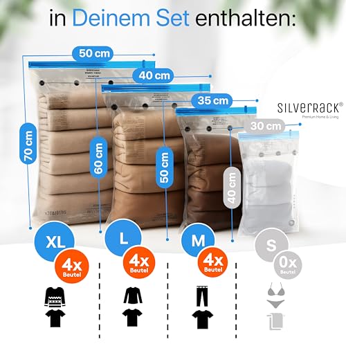 SilverRack Vakuumbeutel für Kleidung Reise zum Rollen [12 Stück] in (4x 35x50 cm / 4x 40x60 cm / 4x 50x70 cm) - Vakuum Beutel Kleidung Reise - Travel Vakuumbeutel - ideal zum Reisen platzsparend