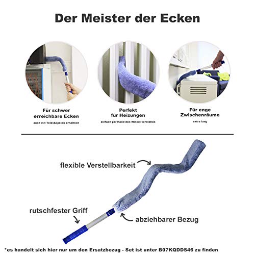 Putzen wie die Profis – Ersatzbezug für FlexDusty Staubwedel - Ultra-Mikrofaser für hohe & enge Stellen - antistatisch, biegbar, waschbar - extra lang (50 cm) - inkl. Gratisprobe GlasRein