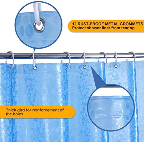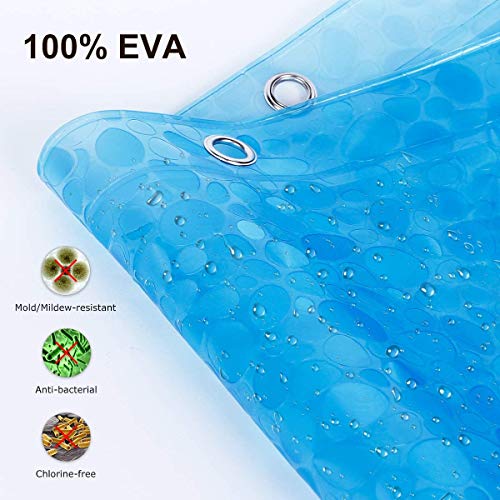 WELTRXE Duschvorhang Anti-Schimmel mit Gewicht Magnet unten, 0.2mm [183x183cm] Wasserdicht Antibakteriell Eva Vorhang für Dusche und Badewanne, 3D Steinmuster Blau, inkl. 12 Duschvorhangringen Kinder