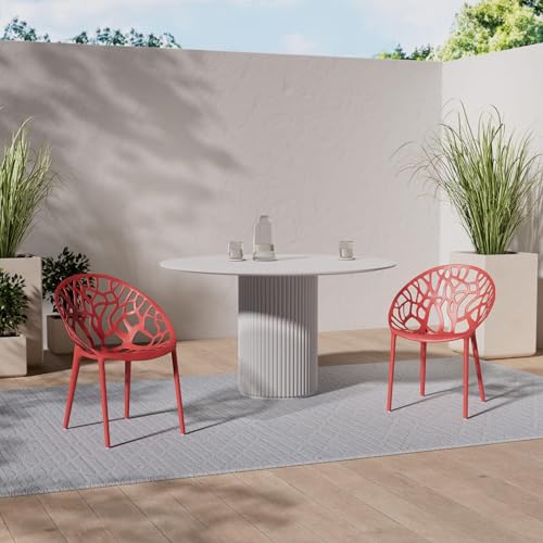 CLP 2er Set Gartenstühle Hope Kunststoff I Stapelstühle wetterfest und UV-beständig I Outdoorstühle pflegeleicht I Sessel für draußen, Farbe:rot