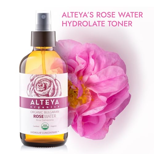 Alteya Bio Rosenwasser Spray in Glasflasche 120ml- 100% USDA Organic-zertifiziert Rein Natürlich Wasserdampfdestilliertes Blütenwasser aus Damaszener Rosen, Direktverkauf vom Alteya Organics
