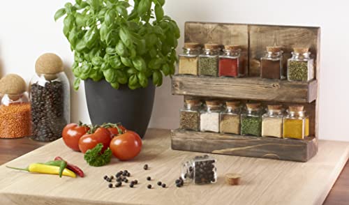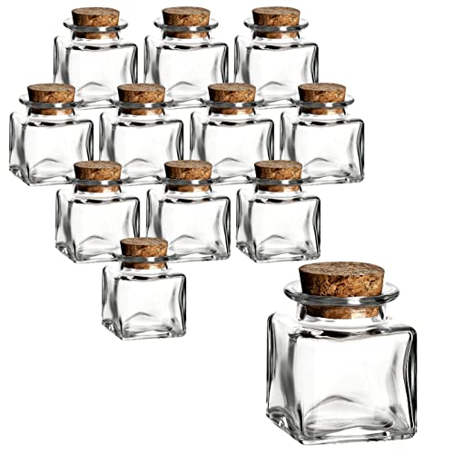 gouveo 12er Set Gewürzgläser 50 ml eckig mit Korken - Mini Korkengläser mit Korkverschluss - Kleine Vorratsgläser für Kräuter, Gewürze (KGE050)