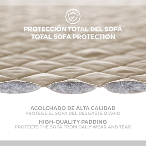 Textilhome Sofa Überzug MALU, Sofabezug 1-Sitzer (110 cm), Couch Überzug Gepolstert & Wende, Sofaschoner SofaÜberwurf Schutzdecke, Universell, Haustierfreundlich, Farbe Beige