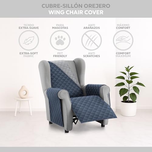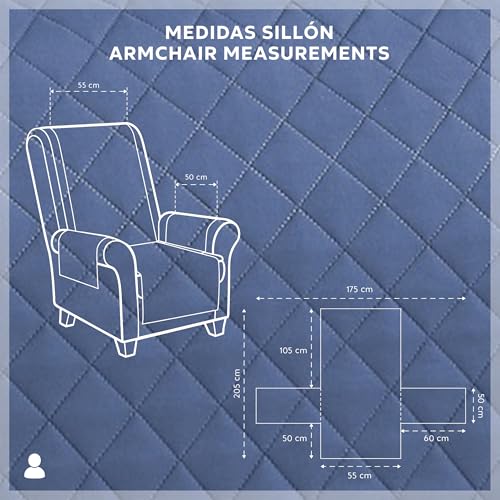Textilhome Sofa Überzug MALU, Sofabezug 1-Sitzer (110 cm), Couch Überzug Gepolstert & Wende, Sofaschoner SofaÜberwurf Schutzdecke, Universell, Haustierfreundlich, Farbe Blau