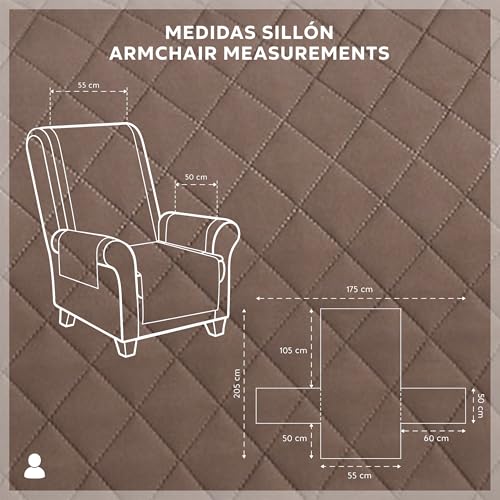 Textilhome Sofa Überzug MALU, Sofabezug 1-Sitzer (110 cm), Couch Überzug Gepolstert & Wende, Sofaschoner SofaÜberwurf Schutzdecke, Universell, Haustierfreundlich, Farbe Braun