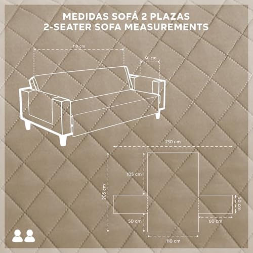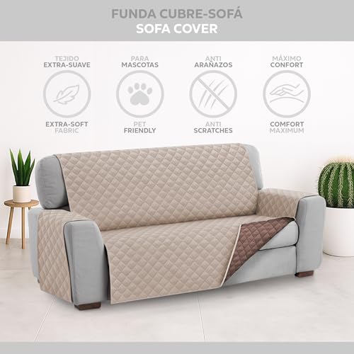 Textilhome Sofa Überzug MALU, Sofabezug 2-Sitzer (110 cm), Couch Überzug Gepolstert & Wende, Sofaschoner SofaÜberwurf Schutzdecke, Universell, Haustierfreundlich, Farbe Beige