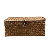 Esoes Aufbewahrungskorb aus geflochtenem Rattan, Aufbewahrungsbox mit Deckel, Seegras, Wäschekörbe, Make-up-Organizer für Badezimmer, Wohnzimmer, Küche