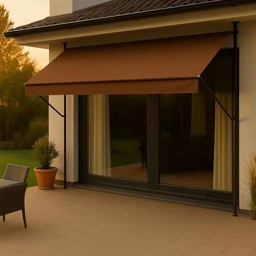 Angerer Klemmmarkise Style mit Handkurbel, Terrasse/Balkon, einfache Montage ohne Bohren, Made in Germany, hochwertiger Stoff, UV-beständig, höhenverstellbar, wasserabweisend, 350 cm Braun