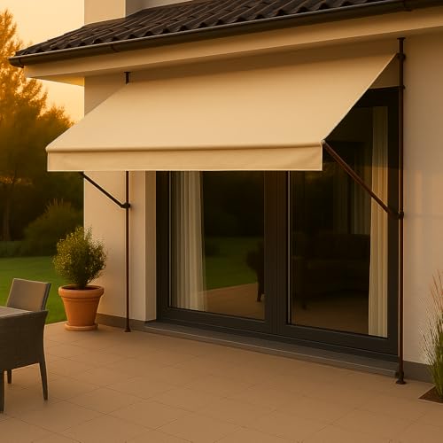Angerer Klemmmarkise Style mit Handkurbel, Terrasse/Balkon, einfache Montage ohne Bohren, Made in Germany, hochwertiger Stoff, UV-beständig, höhenverstellbar, wasserabweisend, 400 cm Sand