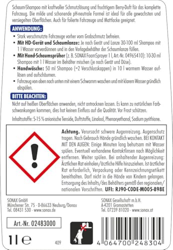 SONAX XTREME RichFoam Shampoo (1 Liter) Schaum/Snow Foam Shampoo erzeugt dichten, langhaftenden & schmutzlösenden Schaumteppich, ph-neutral, Berry-Duft | Art-Nr. 02483000