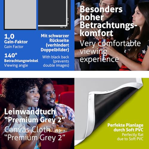 Größe(87): 186 x 105 cm (84") 16:9 Tuch: Grau