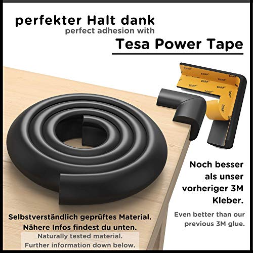 BEARTOP Kantenschutz Baby - 6m Kantenschutzband Selbstklebend mit 10 Ecken - Kantenschutz für Babys, Kinder und Senioren - Eckenschutz für Glastische und Möbel - Mit TESA Power Tape - Schwarz