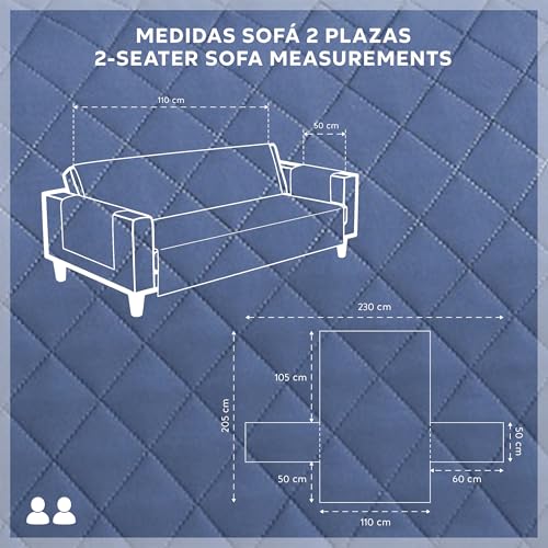 Textilhome Sofa Überzug MALU, Sofabezug 2-Sitzer (110 cm), Couch Überzug Gepolstert & Wende, Sofaschoner SofaÜberwurf Schutzdecke, Universell, Haustierfreundlich, Farbe Blau