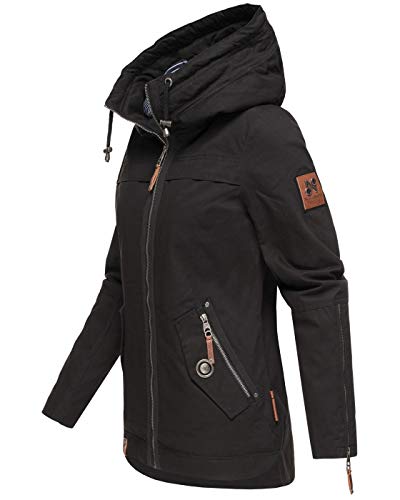 Navahoo Damen Übergangsjacke Wekoo – Leichte Baumwolljacke mit Kapuze Schwarz M