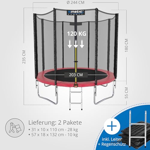 Kinetic Sports Gartentrampolin SALTO PLUS, Ø 244 cm, Komplett-Set mit Leiter, Regenplane, Einstiegsleiter