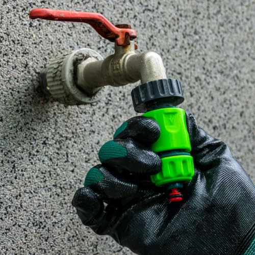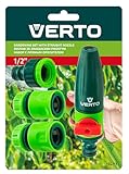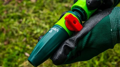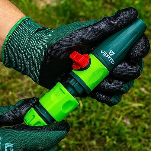 VERTO Reinigungsspritze mit 1/2" Schlauchverbinder, Wasserstop und Hahnverbinder - Einstellung der Wasserstrahlintensität - Grün Gartenschlauchspritze mit Stoppfunktion - für die Garten Bewässerung