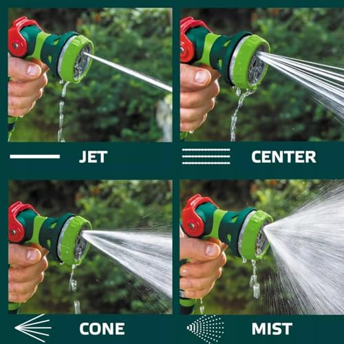 VERTO Gartenbrause, 8-Funktionen Handbrause mit 3 Stück Anschluss Kit 1/2" - Multi Gartenspritze mit Ergonomischer Griff, Grün Wasserspritze für Garten, Regulierung der Wasserstrahlstärke