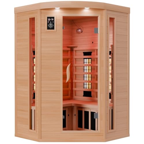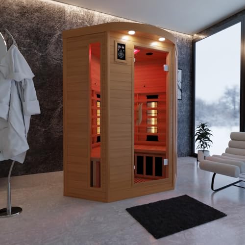 Dewello Infrarotkabine LAKEFIELD 3 120x120 DUAL-THERM für 1-2 Personen aus Hemlock Holz mit Vollspektrumstrahler