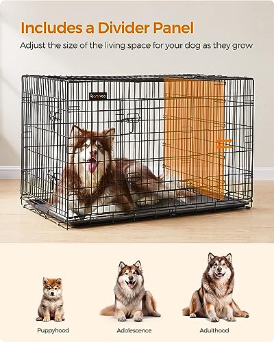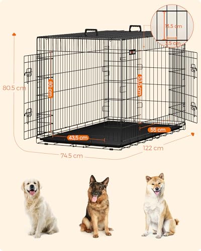 Feandrea Hundekäfig, Hundebox, zusammenklappbar, transportabel, 2 Türen, 122 x 74,5 x 80,5 cm, schwarz PPD48BK