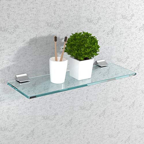bijon Glasregal Glasablage Wandregal Glas Bad-Regal Glas Badezimmer Regal Badablage Ablageregal - 8mm Hartglas, 40 x 20 cm, Klarglas + Halterung D - Chrom Glanz Optik