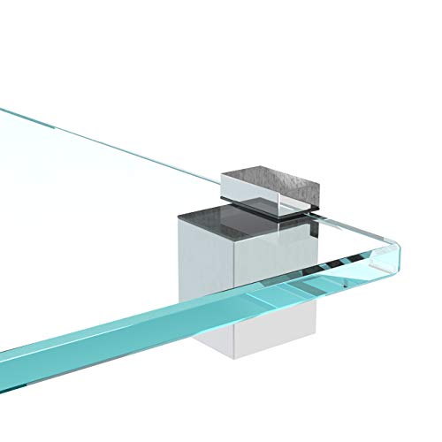 bijon Glasregal Glasablage Wandregal Glas Bad-Regal Glas Badezimmer Regal Badablage Ablageregal - 8mm Hartglas, 50 x 12 cm, Klarglas + Halterung G - Chrom Glanz Optik
