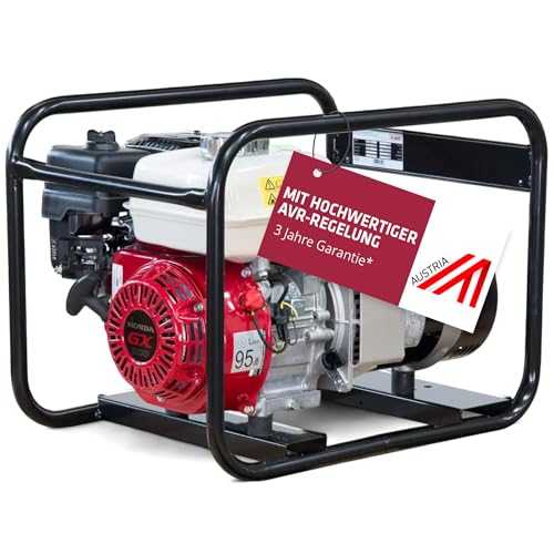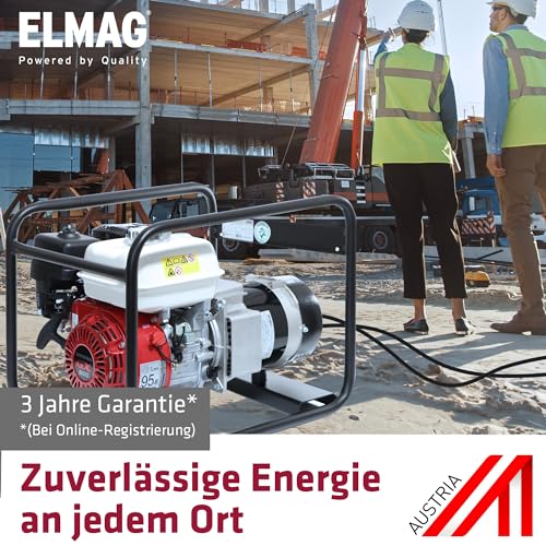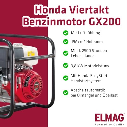 ELMAG SEB 3300W-AVR Benzin Stromerzeuger – Stromgenerator mit 4-Takt-Motor luftgekühlt, 3,8 kW & 3,1 l Tank – 2 x 230 V Schuko 16 A – Notstromaggregat mit AVR, Überlastschutz & Handstart