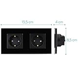 Navaris Glas Schuko Steckdose zweifach - mit Montagematerial - Design Schutzkontakt Wandsteckdose mit Glasrahmen - Doppelsteckdose in Schwarz