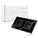 Navaris Steckdose Glas Schuko Steckdose zweifach - mit Montagematerial - Doppelsteckdose, 1-St.