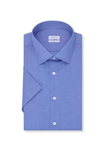 Seidensticker Herren Mens Slim Shortsleeve Cotton Businesshemd, Mittelblau(666261), 42 EU