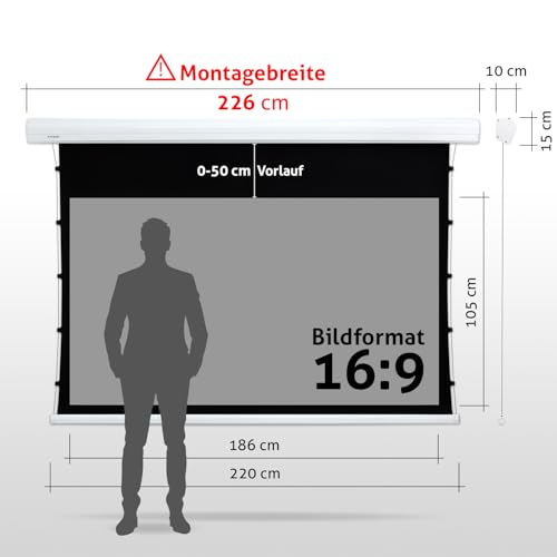 ESMART Expert XTR Tageslicht Tension-Leinwand GRAU 226 cm Bild 186 x 105 cm (84") 16:9 | Fernbedienung | Heimkino elektrische Beamer Projektionsleinwand Motor Tension LCD LED