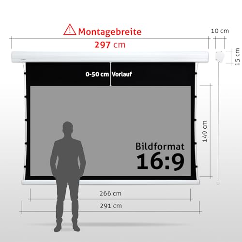 ESMART Expert XTR Tageslicht Tension-Leinwand GRAU 297 cm Bild 266 x 149 cm (120") 16:9 | Fernbedienung | Heimkino elektrische Beamer Projektionsleinwand Motor Tension LCD LED