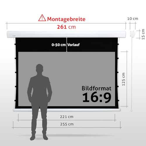 ESMART Expert XTR Tageslicht Tension-Leinwand GRAU 261 cm Bild 221 x 125 cm (100") 16:9 | Fernbedienung | Heimkino elektrische Beamer Projektionsleinwand Motor Tension LCD LED