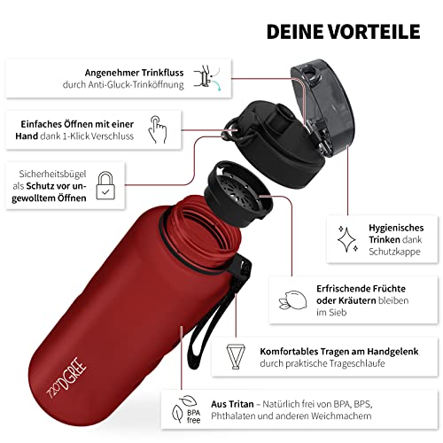 720°DGREE Trinkflasche Trinkflasche uberBottle softTouch mit Sieb imperial red 1,5l