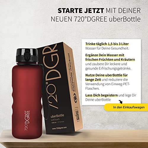 720°DGREE Trinkflasche 1,5 Liter “uberBottle“ softTouch +Sieb - BPA-Frei - XL Wasserflasche für Gym, Fitnessstudio, Workout, Fitness, Sport, Outdoor - Große Sportflasche aus Tritan - Leicht, Stoßfest