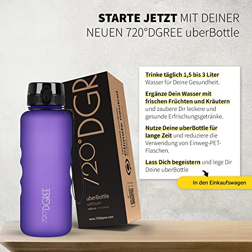 720°DGREE Trinkflasche 1,5 Liter “uberBottle“ softTouch +Sieb - BPA-Frei - XL Wasserflasche für Gym, Fitnessstudio, Workout, Fitness, Sport, Outdoor - Große Sportflasche aus Tritan - Leicht, Stoßfest