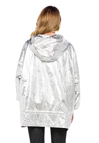 Cipo & Baxx Damen Jacke WJ169 Silber – Leichte Übergangsjacke im Modernen Streetwear Stil mit Glanzoptik, Kapuze & Taschen – Stylische Freizeitjacke für Alltag & Party - WJ169 Silber L