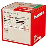 fischer DuoPower 6 x 50 S, Universaldübel mit Schraube, 2-Komponenten-Dübel, Kunststoffdübel zur Befestigung in Beton, Ziegeln, Stein, Gipskarton uvm., 50 Dübel + 50 Schrauben