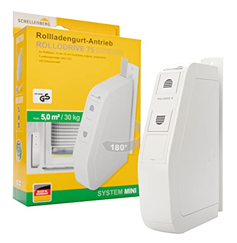 Schellenberg 22575 Elektrischer Gurtwickler ROLLODRIVE 75 STANDARD, bis 5 m² Rollladenfläche, 30 kg Zugkraft, 180 Grad Schwenkbar, Komplettset inkl. Netzstecker und Zeitautomatik