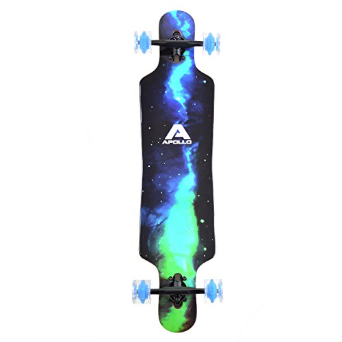 Apollo Longboard Galaxy Special Edition Komplettboard mit High Speed ABEC Kugellagern, Drop Through Freeride Skaten Cruiser Boards Farbe: Sternennebel/Grün
