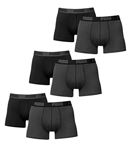 PUMA Herren Boxershorts Unterhosen 521015001 6er Pack, Wäschegröße:L;Artikel:-691 Dark Grey Mel. / Black