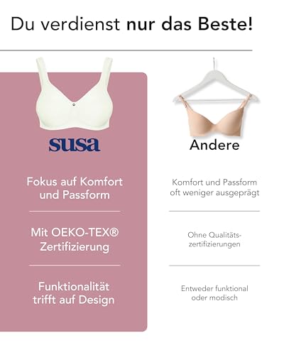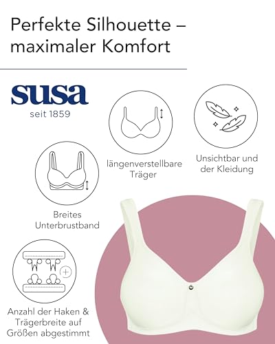 SUSA BH Damen ohne Bügel - Catania 7870-75A Ivory - Spacer-BH mit Unterbrustband - Gemoldete Cups mit Stützblenden & verstellbaren Träger - Seamless - Bequemer T Shirt BH