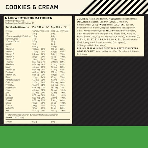 Optimum Nutrition Serious Mass Weight Gainer, Geschmack Cookies and Cream, 5.45kg, 16 Portionen