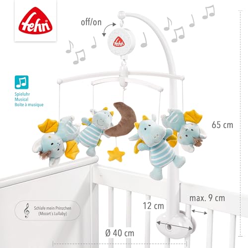 Fehn Musik Mobile Little Castle - Baby Einschlafhilfe Musikspielzeug mit süßen Tieren - Babymobile Spieluhr Melodie "Mozarts Wiegenlied" - Musikmobile Babybett Spielzeug für Babys von 0–5 Monaten